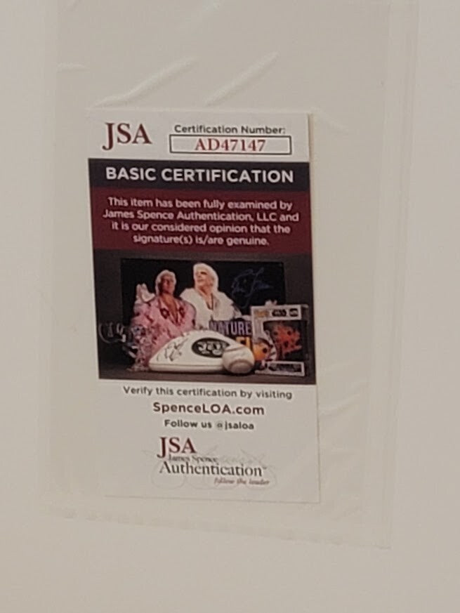 Item is professionally framed featuring double orange & cream matting. The frame is made of wood. The picture frame is wrapped to ensure it will not be scratched. Please see picture for frame details. This ensures your investment is not damaged, bent or faded. This item is is gift ready.