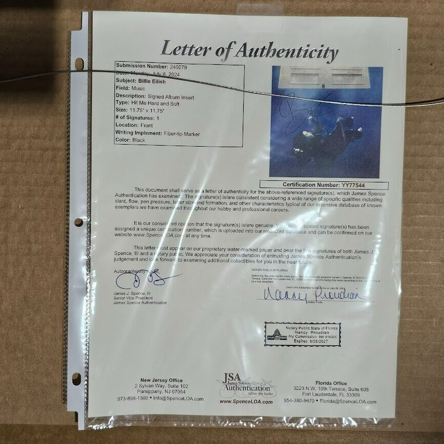 Billie Eilish SIGNED Hit me Hard and Soft LP Autographed JSA Certified Framed